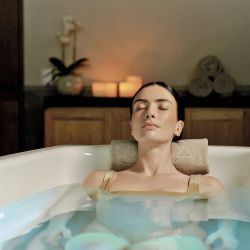 Tiene 100 habitaciones y 35 residencias, además de dos piscinas (una de ellas infinita con vista al mar), gimnasio, salas de meditación y yoga, un spa con salas de sauna, camas de piedra calientes y duchas escocesas con vista a los manglares y, por supuesto, todos los consultorios médicos necesarios para los tratamientos.