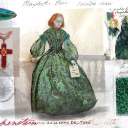 -Así es y te voy a contar algo que parece medio loco, pero fue la punta para vestir al personaje. Cuando Guillermo habló de Elizabeth nos dijo que era una mujer que amaba a los escarabajos, alguien inmerso en lo microscópico de la vida y profundizamos en eso, su estilo es orgánico ella misma es una fuerza de la naturaleza. Además está el tema de su amor por los libros, Elizabeth es una mujer muy culta, los colores de sus atuendos fueron potenciados para iluminar ese espacio gótico, ella representa la luz humanista en un mundo de oscuridad.