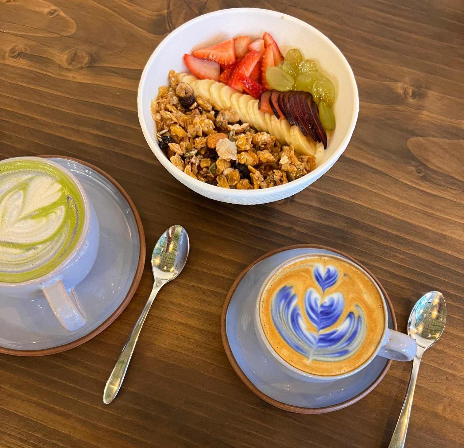 En Muyè, el café ocupa un lugar central con granos arábigos de Brasil tostados en un punto medio. La carta incluye espresso, americano, cortado, cappuccino, flat white, latte y versiones saborizadas con chocolate, caramelo o vainilla, además de alternativas con leche de almendras. La panadería artesanal suma budines, tortas, cookies, alfajores y medialunas.