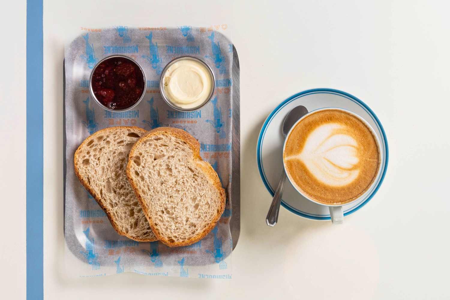 En Café Mishiguene, el café de especialidad se elabora con granos seleccionados de Brasil de Segafredo Massimo, un blend 100% arábico con notas de caramelo, tabaco y pan tostado. Se sirve en versiones clásicas —espresso, lungo, macchiato, cappuccino y americano— y también en combinaciones diferentes como masagrán o con tónica. Para acompañar, hay croissants, pastrón con queso gruyere, huevos revueltos, avocado toast y bagel con lox de trucha ahumada.