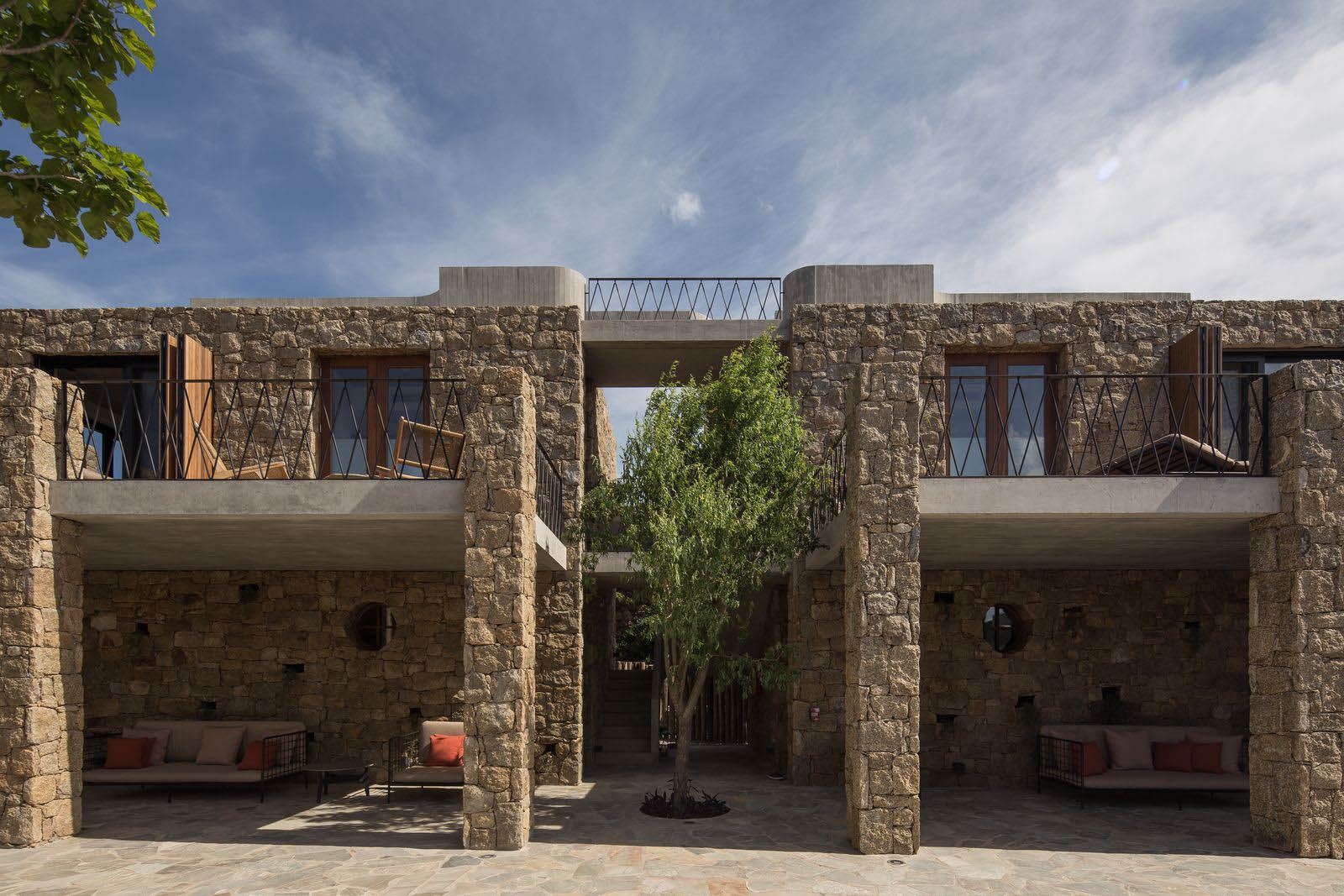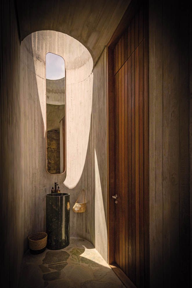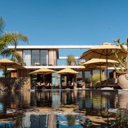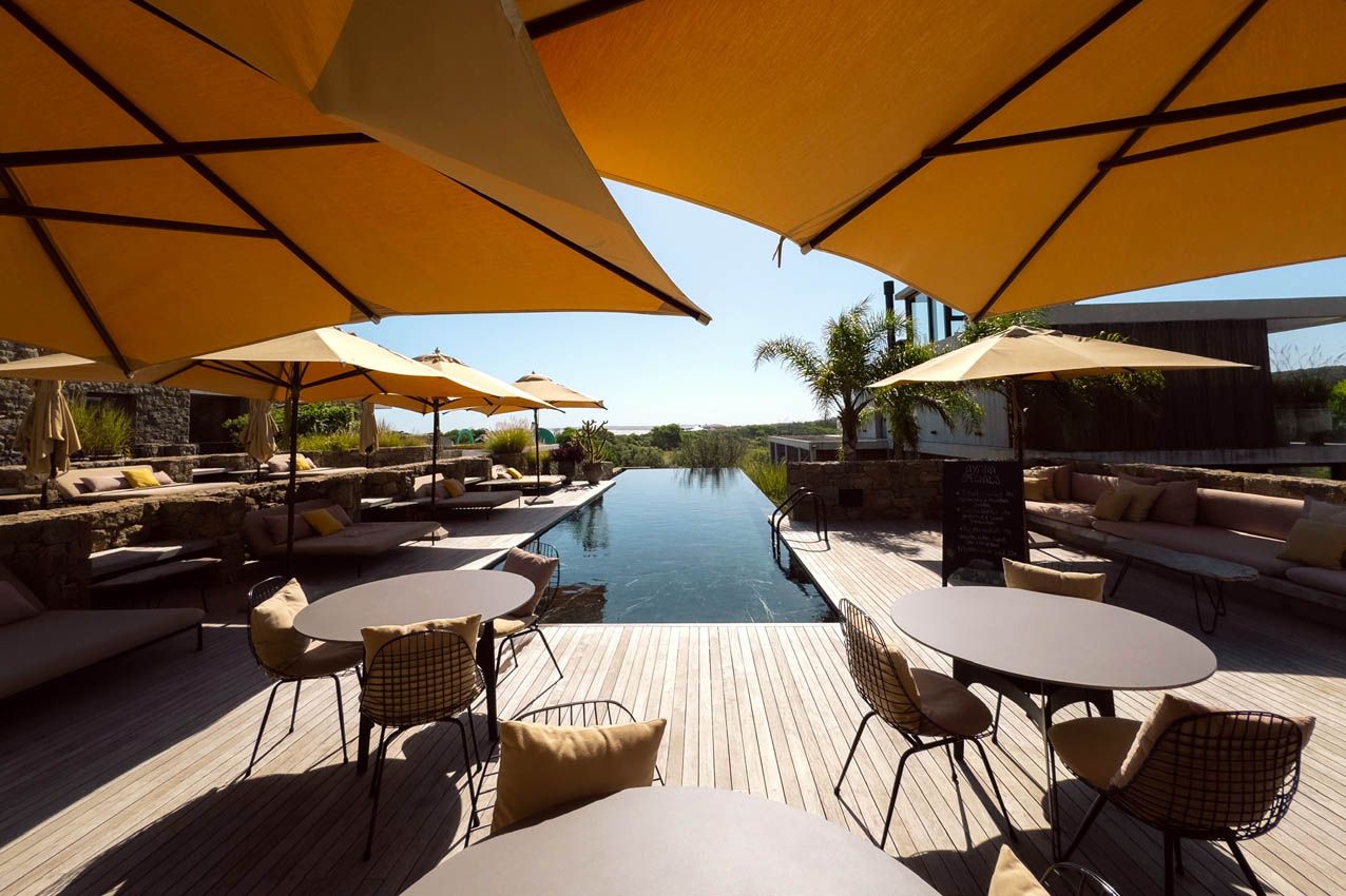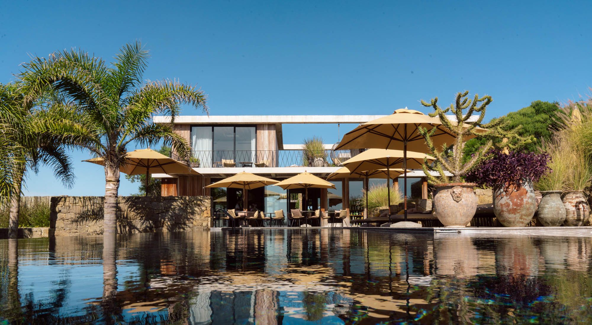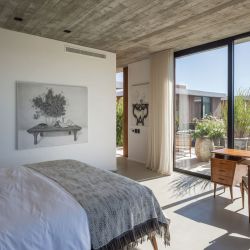 Amantes del arte y de la naturaleza, la pareja dio forma a la posada con hormigón, piedras locales y madera de lapacho. Cada habitación cuenta con al menos 45 metros cuadrados, jardines privados o vistas al mar, y una notable entrada de luz natural gracias a ventanales de piso a techo en al menos dos de sus lados. Algo que los Kofler destacan especialmente de José Ignacio es su baja contaminación lumínica, ya que no hay luces en las calles de tierra del pueblo pesquero. Los jardines, las terrazas —como la del restaurante— y la piscina ofrecen vistas abiertas a la Playa Mansa, ubicada a apenas una cuadra y media de la posada.