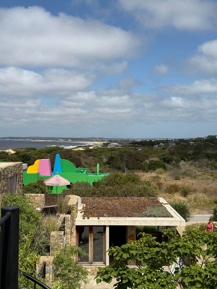 Preservar el entorno natural —evitar la construcción de grandes edificios y la deforestación— fue la primera premisa del proyecto. A partir de allí comenzó la construcción, y Edda, responsable de la decoración y la ambientación, buscó imprimir ese aire sofisticado y relajado de la Costa Azul francesa de los años 50 y 60. Cada pieza de mobiliario fue adquirida localmente, en Uruguay o Argentina, y en su mayoría se trata de objetos restaurados o piezas únicas provenientes de Montevideo y Punta del Este.