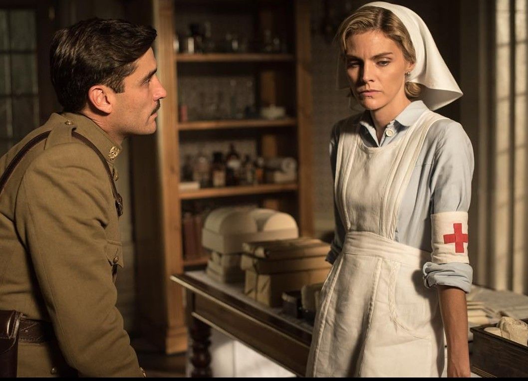 Lejos de la sobriedad esperada en entornos bélicos, la serie sorprende por su cuidado estilismo. Los uniformes de enfermeras, impecablemente diseñados, coexisten con looks de época que rinden homenaje a los años veinte: siluetas estructuradas, sombreros cloche, tejidos nobles y accesorios que hablan de un pasado aristocrático sin opacar la funcionalidad.