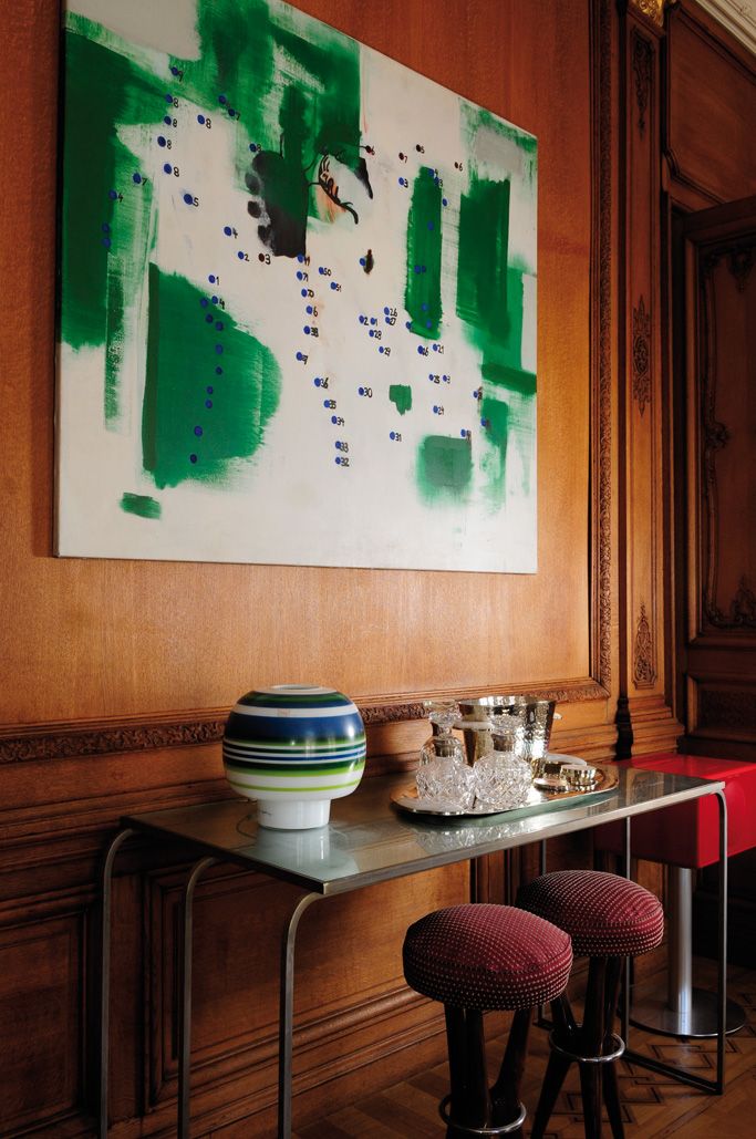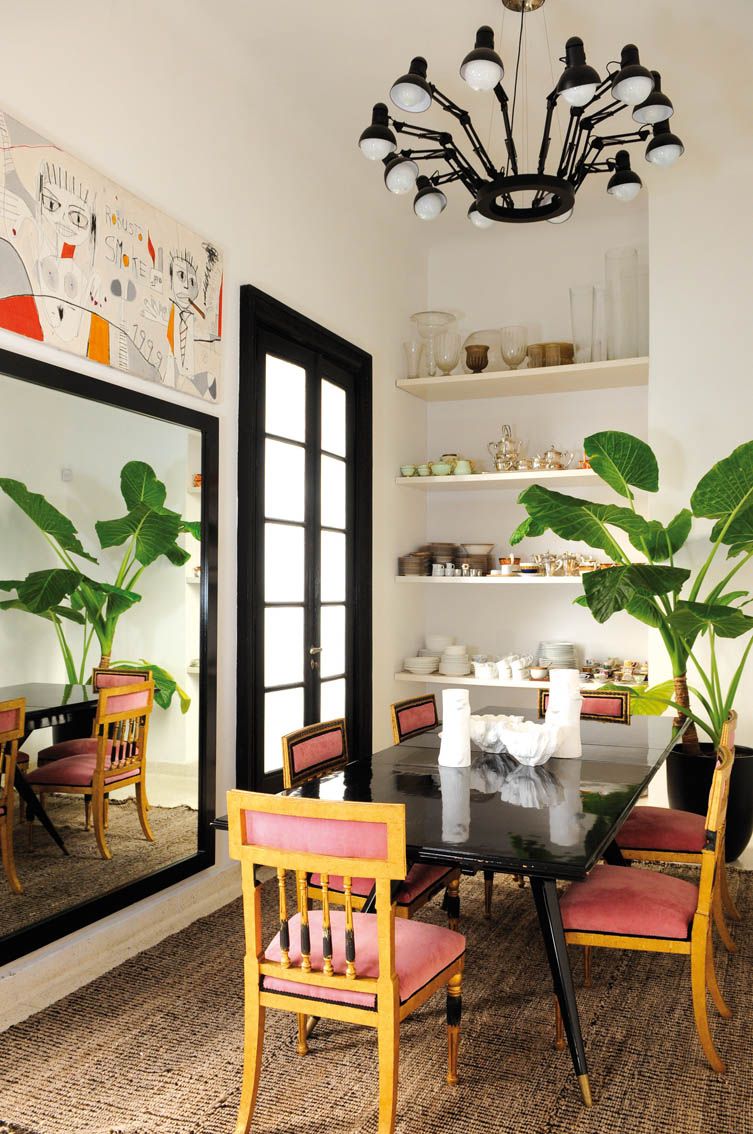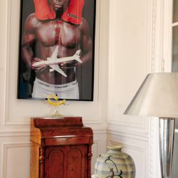 “Esto no es un museo", resume. La dinámica es casi orgánica. Se desayuna en el cuarto principal, se almuerza en el comedor, el living puede convertirse en espacio de entrenamiento o de encuentro según el día. La biblioteca funciona como oficina, otro ambiente se destina a ver películas y la cocina, por la noche, se vuelve punto de reunión. Esa idea de casa viva también define su estilo. Aquí no hay fidelidad a una época ni a una corriente, sino más bien a una sensibilidad. “Podés tener un sillón imperio y atrás un Warhol de los 70, o una lámpara de los años 30 con una mesa de los 50.