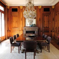 No pasa por el estilo sino por la belleza de la pieza”, explican. El resultado es una convivencia natural entre objetos de distintas procedencias y tiempos, donde dialogan lo clásico y lo contemporáneo. Hay, sin embargo, un espacio que concentra algo particular. El comedor con boisserie señorial, una de las marcas más claras de la historia de la casa, mantiene la araña original de la que los dueños anteriores no querían desprenderse. La escena terminó siendo tan decisiva que quedó asentada en la escritura ("si no se queda la araña, no compramos", indicaron Marcelo y Ariel). Hoy ese ambiente no solo conserva su carácter, sino que funciona como imán. “Tiene una envoltura que te hace sentir cuidado”, dice Marcelo, que cuenta que la mayoría de las reuniones terminan sucediendo ahí.
