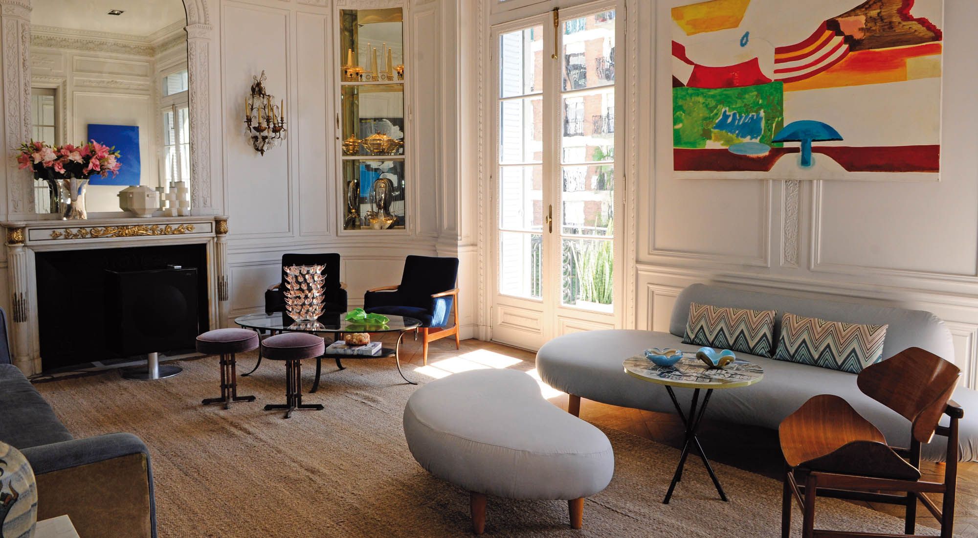 Es martes, media tarde, y sobre la avenida todo avanza con el pulso impaciente de la ciudad: oficinas, colectivos, turistas, pasos apurados. Pero alcanza cruzar la puerta de este edificio francés a pasos de Plaza San Martín para que el clima cambie por completo. Adentro hay otra cadencia. La luz entra a raudales por los ventanales, el ruido se apaga y la sensación es inesperada para una dirección tan urbana: no la de un departamento en pleno centro, sino la de una casa amplia, silenciosa y a la vez con mucha vida. Es el refugio de Marcelo Lucini y Ariel Estanga, quienes dieron con esta joya hace 14 años, cuando todavía conservaba la lógica de una familia numerosa. Desde entonces la fueron transformando en un espacio propio de impronta ecléctica, donde cada ambiente tiene uso, historia y carácter.