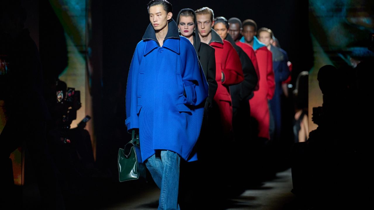 La sobriedad elegante tomó forma en Celine, con abrigos largos en negro profundo, camisas de seda fluidas y pantalones de tiro alto que alargaban la figura con precisión geométrica. El minimalismo parisino volvió a demostrar que la elegancia puede residir en la pureza de las líneas.