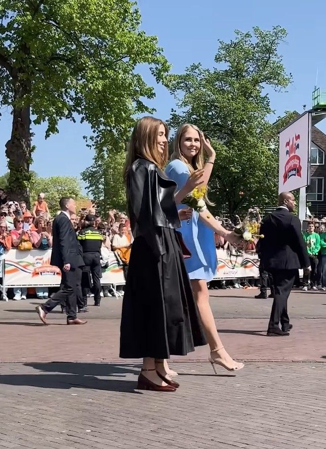 Uno de los aspectos más llamativos y que le aportó el toque descontracturado al look de la hija de Máxima, fue llevar la campera de cuero como capa, añadiéndole un toque de rebeldía y estilo.