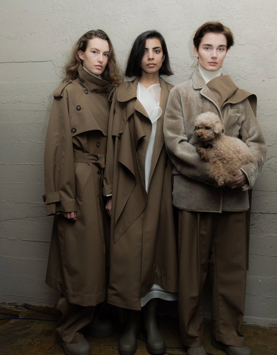 La temporada AW 26 confirmó la tendencia pero la expandió. Blanco, camel, negro y gris conviven ahora con verde chartreuse, teal y azul cerúleo —visibles en propuestas de Caro Editions, Nicklas Skovgaard y Holzweiler. El minimalismo nórdico encontró color sin perder su esencia.