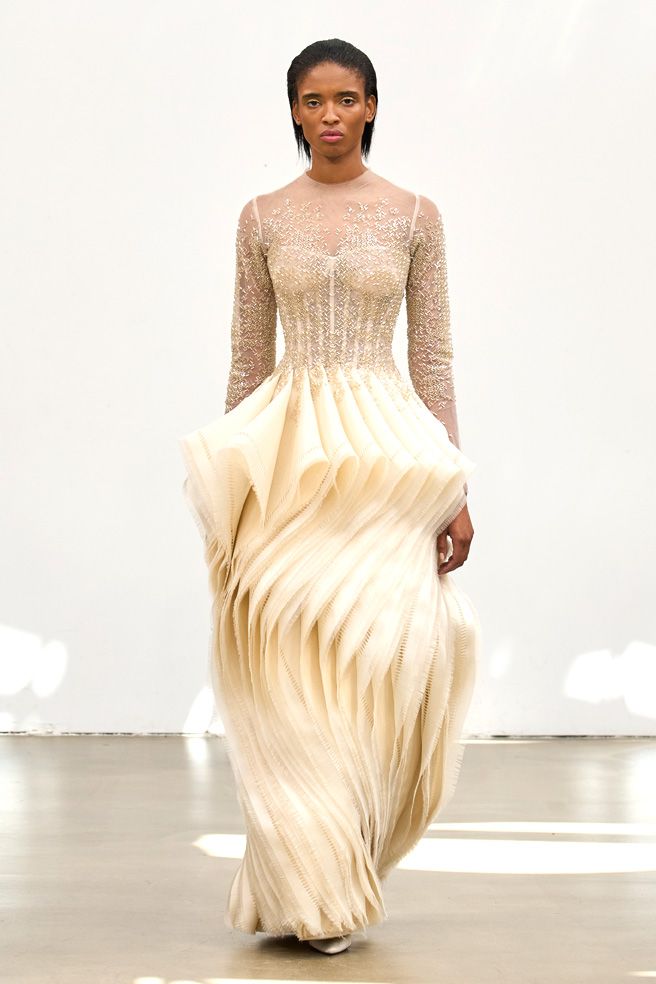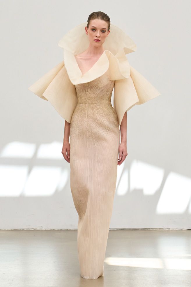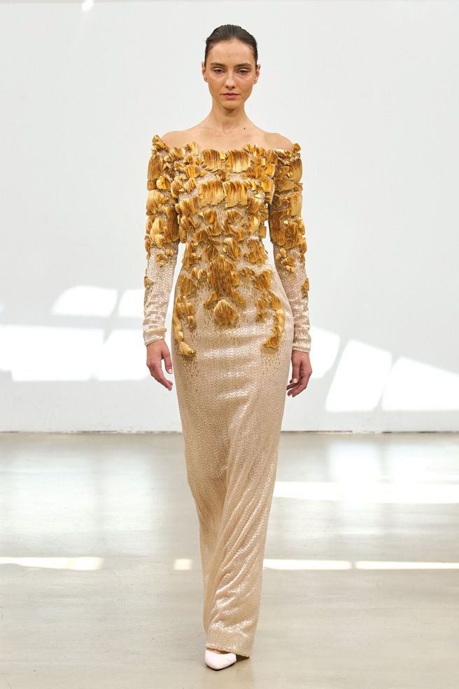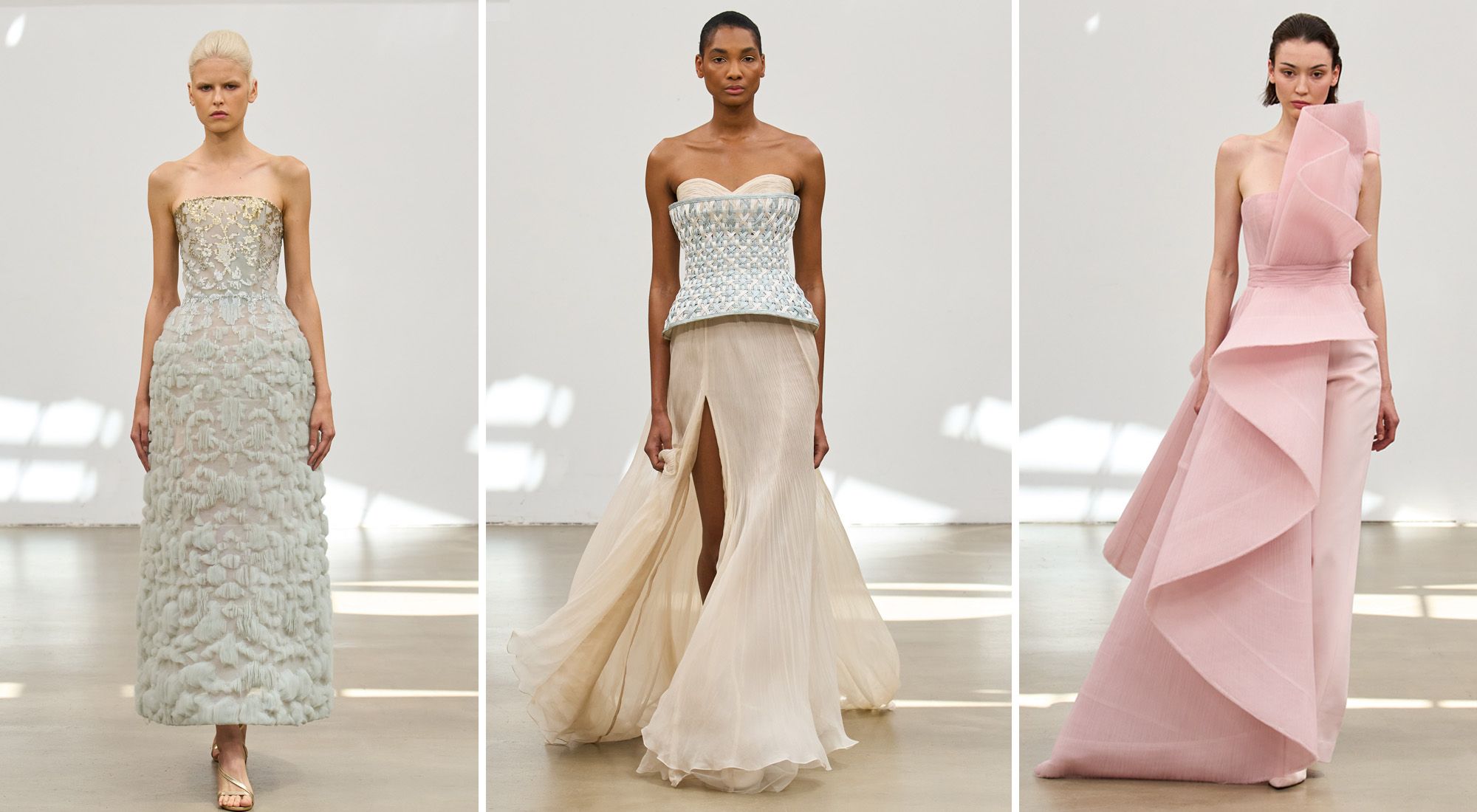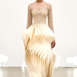 El diseñador sirio se presentó durante la Fashion Week de Alta Costura de Paris su colección Otoño/Invierno 2025-2026. Una vida audaz -así la llamó- explora el equilibrio entre siluetas estructuradas, fluidez y glamour, acompañando el todo con una artesanía de alta costura atemporal y un toque moderno y sofisticado. La primera entrega de esta temporada, abre el telón con una oda al poder femenino moderno. Esta colección está concebida para mujeres que se atreven a mostrarse en su totalidad, abrazando cada faceta de su identidad con determinación y elegancia. Los tejidos lujosos como el terciopelo, mikado, guipur, crepé y encaje, otorgan profundidad y textura a cada prenda, mientras una paleta de colores que oscila entre el rosa pálido y el azul glaciar hasta llegar al bordó intenso y el gris perla, remite a la exploración de la individualidad.