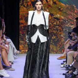Esta dualidad se vio en su colección Threads presentada en la última Semana de Moda en Moscú donde reinventó los tradicionales gazyr (cartucheras dondee se guardaban las balas) cosido en abrigos, las líneas arquitectónicas definidas, una sastrería precisa y diseños de cuero texturizados que se completaban con peinados adornados con joyas.