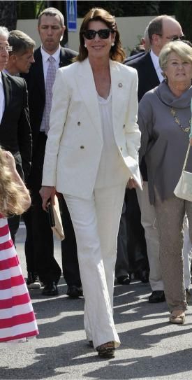 Carolina lució un sastre blanco impecable en un evento oficial en los 90, confirmando que los conjuntos monocromáticos pueden ser tan impactantes como un vestido de gala.