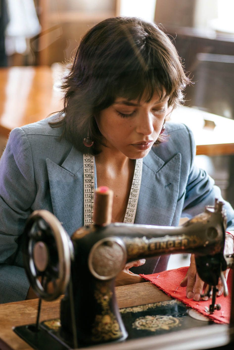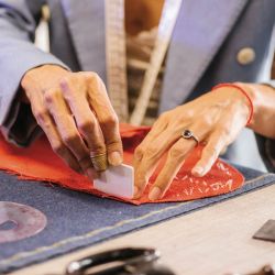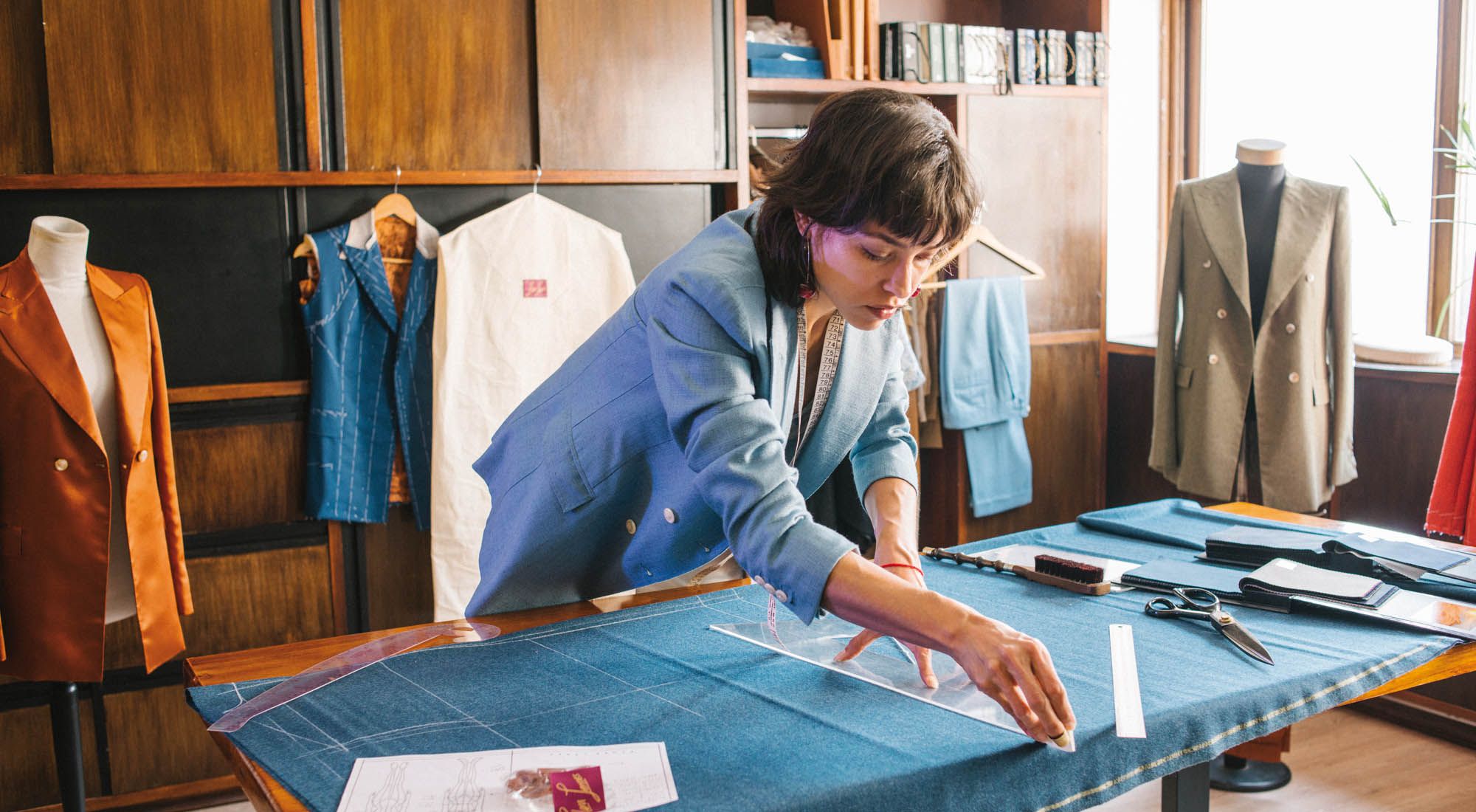 -En un punto, ambas cosas están vinculadas. Cuando llega una mujer, lo primero que hago es hablar con ella: no solo sobre lo que quiere, sino para entender quién es y cómo es su vida. Son charlas de 3 a 4 horas antes de que me cuente para qué vino. La sastrería artesanal no tiene que ver solo con medidas, sino con cómo se mueve, su postura y cómo se desenvuelve. Se necesita generar un espacio de confianza, porque después trabajamos muy cerca. Muchas mujeres llegan con exigencias sobre su cuerpo; algunas buscan cubrir ciertas zonas. A veces les aconsejo pasar tiempo desnudas frente al espejo, para que puedan valorar su cuerpo antes de vestirse.