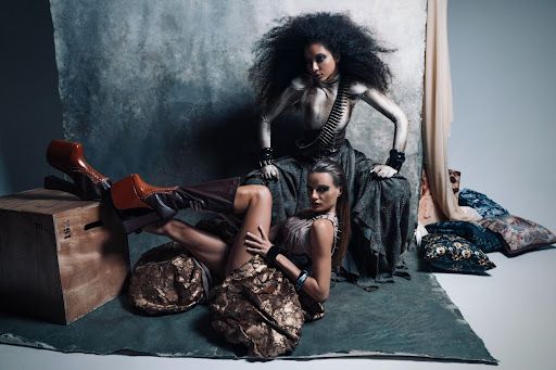 La puesta en escena refuerza esta idea de atemporalidad y mito. El fotógrafo esculpe el cuerpo de las modelos con una luz dramática, transformándolo en mármol vivo. Los fondos evocan templos erosionados o cavernas primordiales, creando una atmósfera de espacio sagrado donde la belleza y una cierta brutalidad estética conviven sin contradicciones.