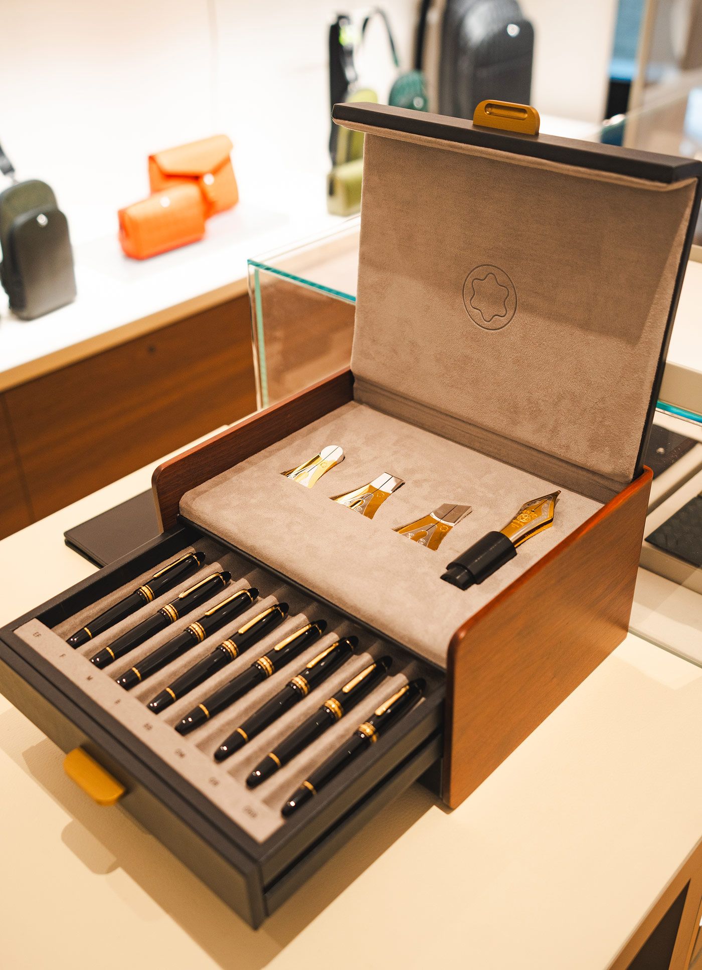 La distribución propone un recorrido fluido entre las distintas categorías: instrumentos de escritura, marroquinería, accesorios, relojería y nuevas tecnologías dialogan en un mismo entorno, logrando que la visita se sienta inmersiva pero serena. Más que un punto de venta, la boutique funciona como un pequeño templo de inspiración, donde la estética y la funcionalidad se encuentran con el gesto íntimo de escribir, crear y dejar huella.