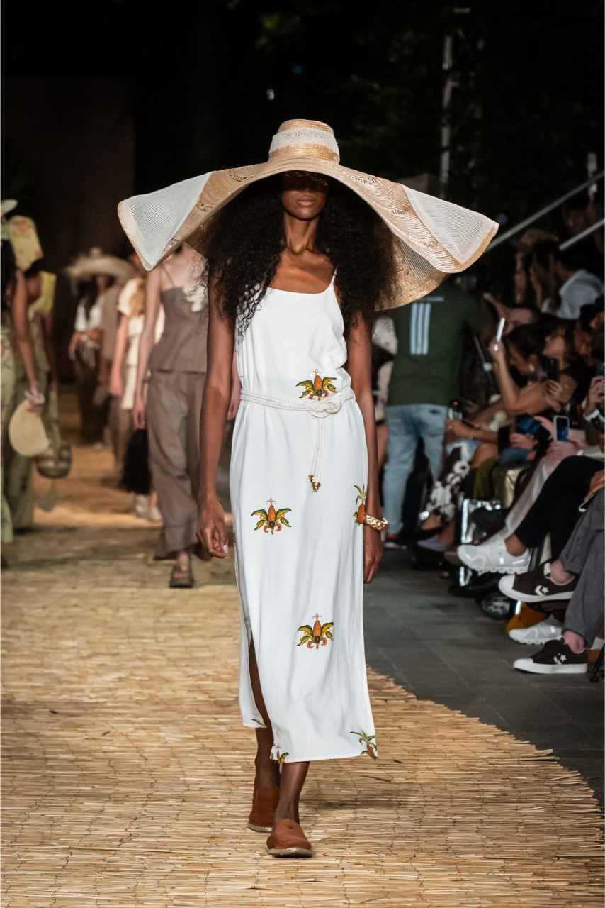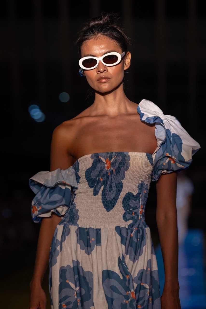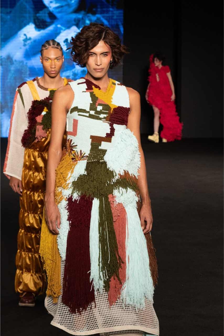 El resort wear, cada vez más relevante en la moda global, también tuvo un lugar destacado. Agua by Agua Bendita presentó vestidos bordados con géneros nobles que pueden usarse tanto en la playa como en la noche, reafirmando la presencia del trabajo artesanal colombiano. Non Stop propuso pareos que se transforman en faldas, tops y corsets combinados con camisolas oversize de estampas mediterráneas. Sea Salt x Soccarrás llevó a la pasarela vestidos versátiles que funcionan para el día y la noche, algunos tejidos y otros con texturas combinadas. Sombreros, bolsos y prendas livianas como linos y algodones completaron los looks perfectos para unas vacaciones de verano.