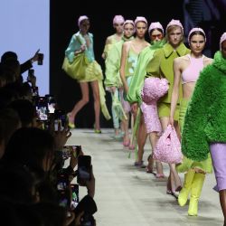 La fundadora de la marca, Anna Panacheva, puso énfasis en la forma, el movimiento y la arquitectura de las líneas. Se vieron drapeados asimétricos, deconstrucción, siluetas en “O” y combinaciones en capas. Los lunares fueron el estampado clave.