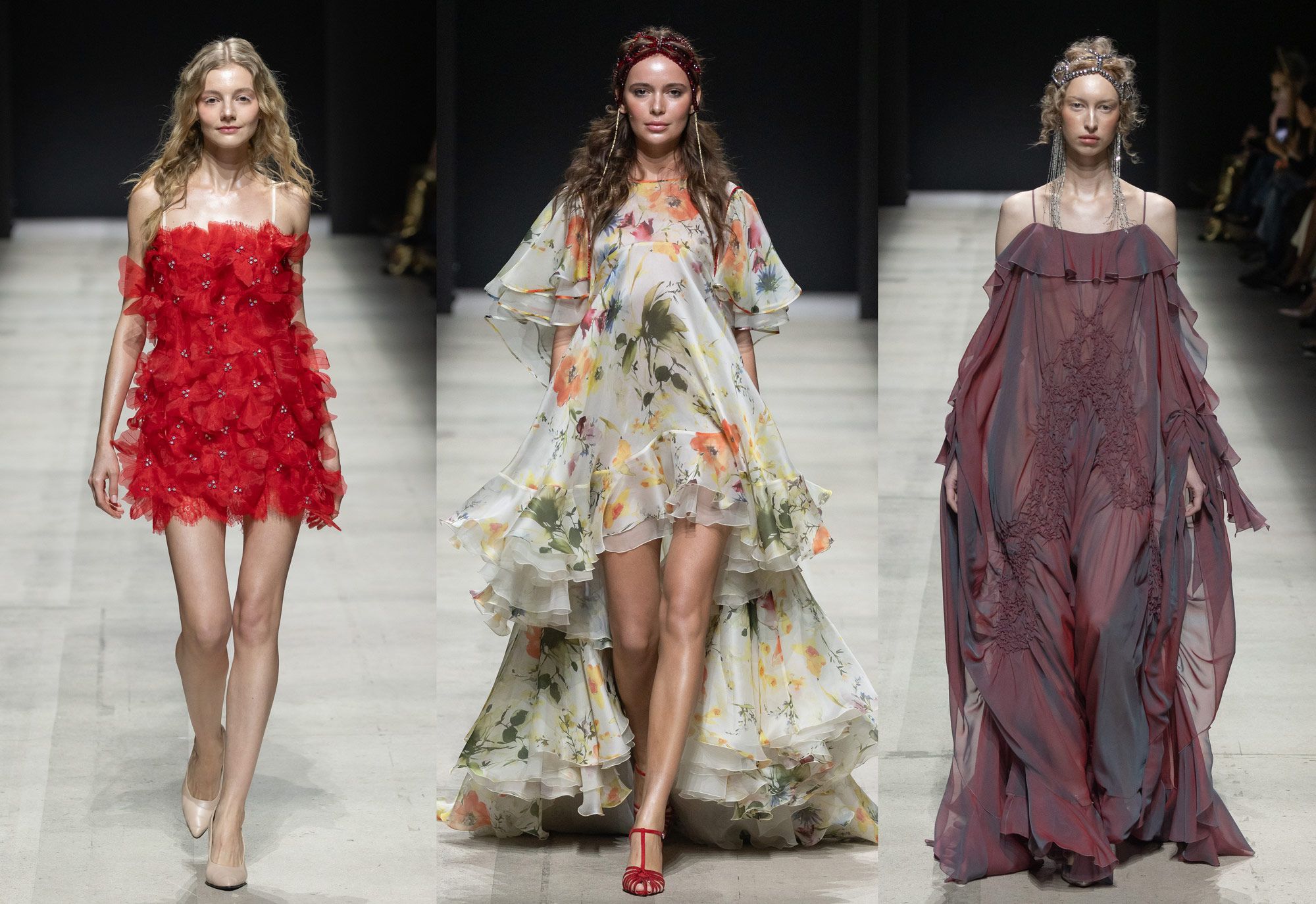 Olesya Zhuravleva, directora creativa de la marca, expuso el diálogo cultural entre Oriente y Occidente. Se vieron mangas en forma de “O”, cortes trapecio y entallados, con aplicaciones llamativas con cuentas, detalles texturizados, piedras brillantes y flecos dinámicos.