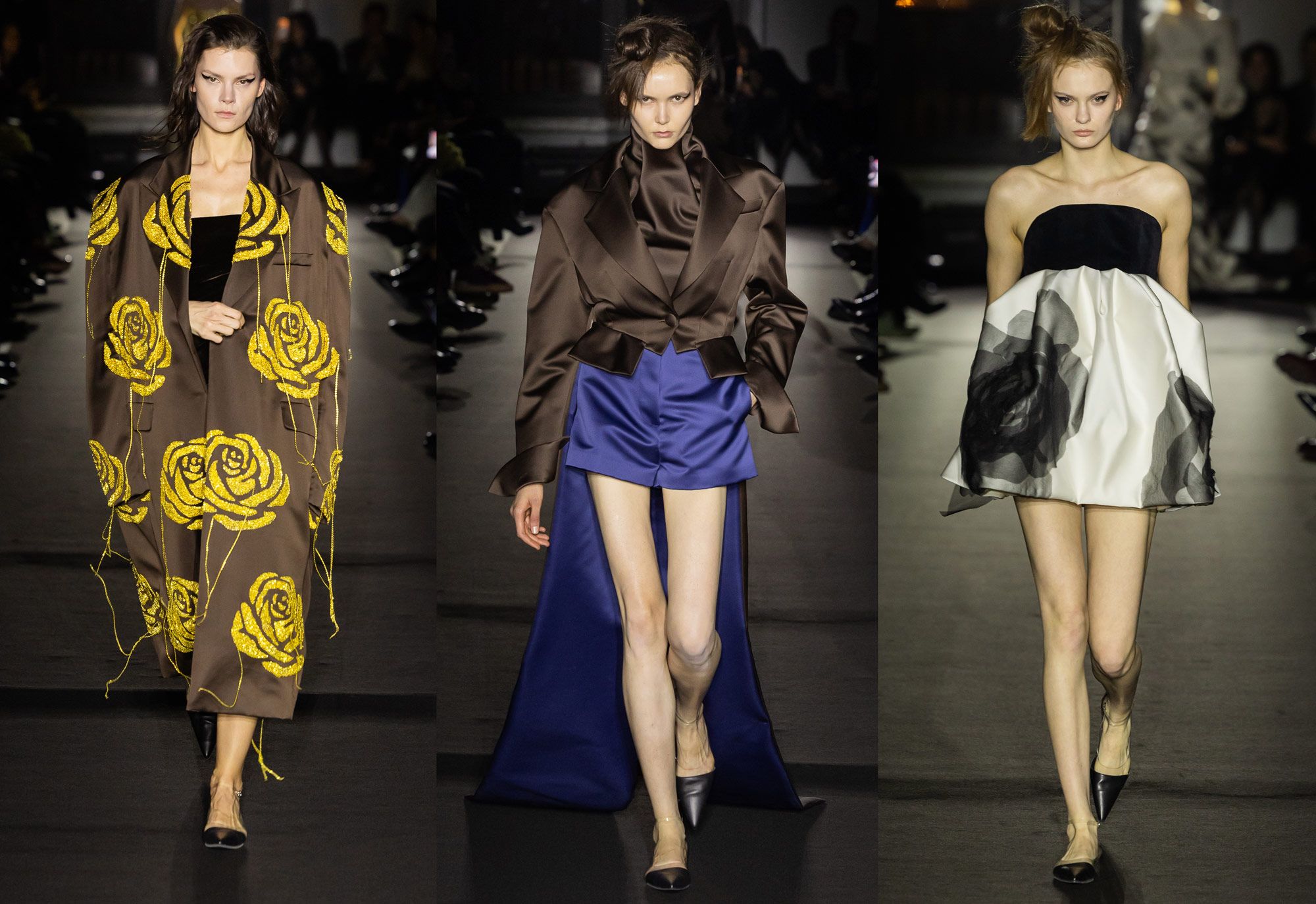 Las líneas fluidas y los volúmenes se combinan con geometrías precisas. Apliques florales, mangas murciélago y hombreras extra large fueron los protagonistas de un invierno con una colorimetría que va del negro profundo al rosa amanecer.